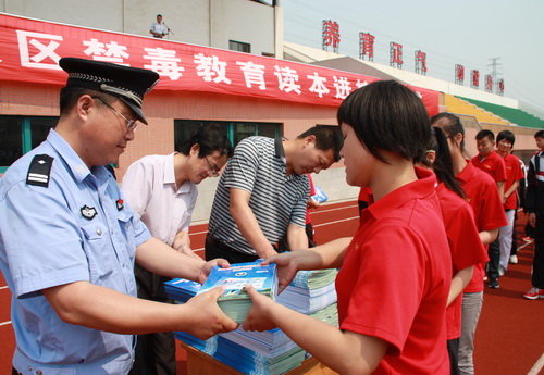 南通开发区禁毒办主任来校发放禁毒教育读本