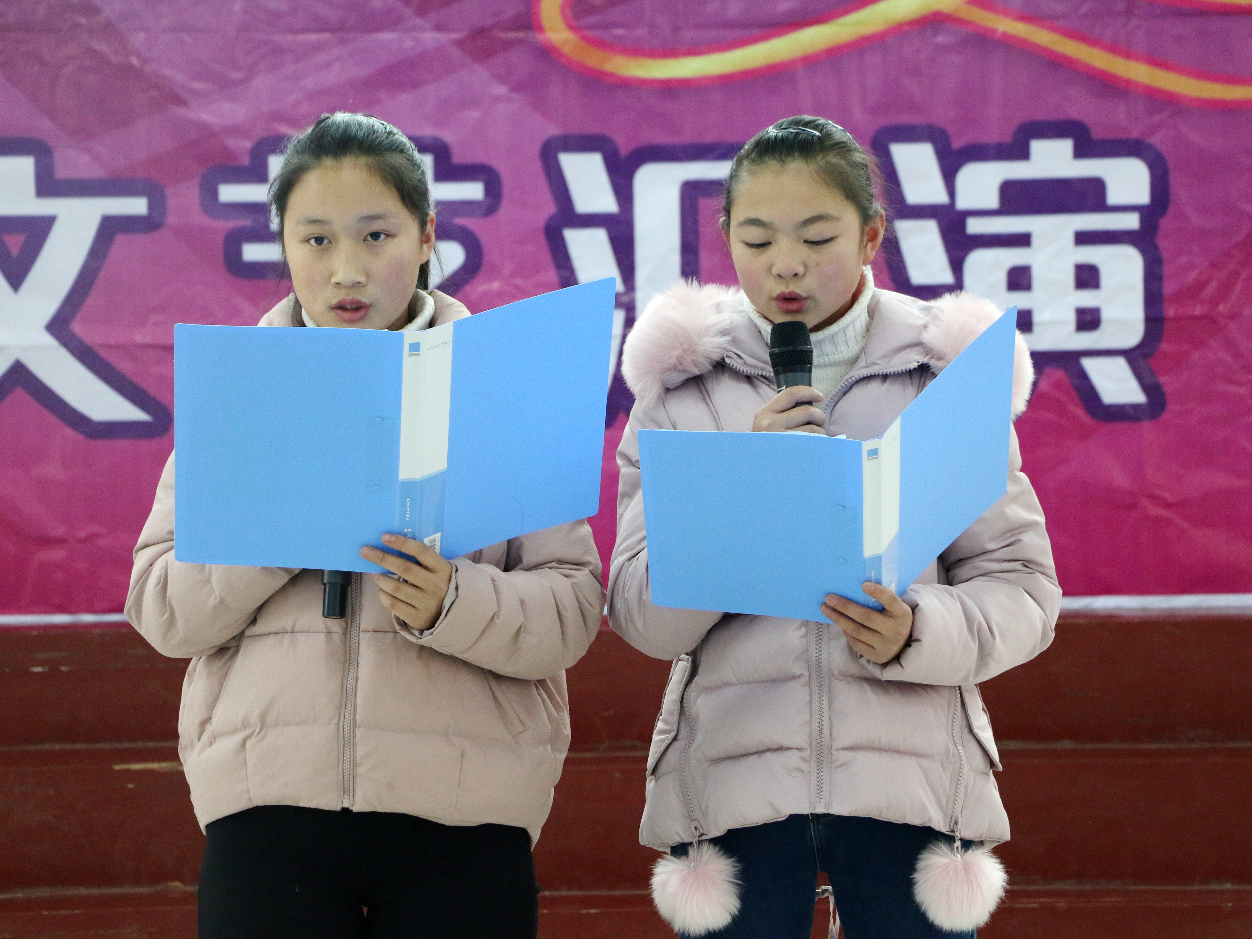 学校党支部副书记、副校长戴智毅作了热情洋溢的新年致辞。本次文艺汇演由舞蹈、独唱、合唱、经典诵读等15个师生节目组成。大合唱中《红星歌》《我的中国心》《中国中国鲜红的太阳永不落》《打靶归来》等一系列红歌不仅活跃了现场,也让在场的每一位学子接受了一次爱国教育;中途,政教处储主任还宣读了我校第六届“校园十大孝星”的学生名单。孝星评比是我校的优良传统,旨在提高同学们的道德水准,让同学们学会感恩,理解“孝心”的深刻含义。