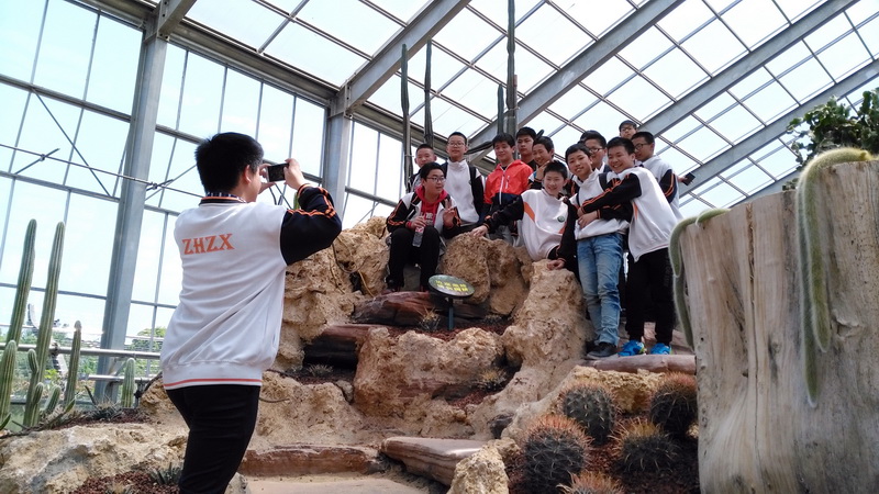 绿树环绕的绿博园内,迷人的景观处处吸引着学生的眼球。宏伟壮观的音乐喷泉,让学生叹为观止;云雾与彩霞呼应,线条与色块交融,万紫千红的一片花海层层叠叠、烂漫似锦,最美中国大自然梯田完美呈现在师生面前;爱丁堡草坪与之遥相呼应,平滑整洁的草坪层层叠加,形成10余米的草坪山,人行甬道依山环绕,与小桥、人工湖交相辉映。此外, 紫薇园、热带水果谷、热带名花雨林馆、“生命之舟”沙生植物园,梅山、桂花林、樱花谷、荷花池、山顶花房等特色景观小品点缀其中。 一步即是一景,韵味无穷,宛若来到世外桃源。一路上,同学们醉心于这美景,边走边与同伴谈论着自己的发现,与花草合影,与大自然亲密接触。