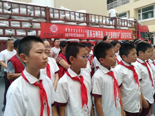 7月15日,“情系玉树孩童,送去温情暖冬”物资发车仪式在我校举行,区组织部、慈善会、社会事业局、部分中小学、社会爱心人士、边防官兵50多人参加了这一仪式,见证了一大货车物资的“出征”。