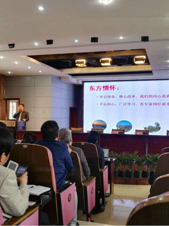 我校党总支书记、校长戴继华向省教研室的专家做专题报告