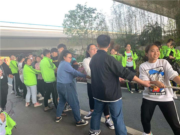 拔河比赛,不仅能强健体魄,还能凝心聚力,同时也促进了各班级、各同学之间的交流。“一、二、加油!”拔河场上,全班同学一起喊着口号,好不热闹!