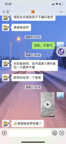 对于学生而言,比起从前在学校日日老师监管,这一阶段的特殊性,更要求他们自主、自觉地学习,及时向老师提问、解疑。当然,各科老师们也常充分做好辅导者角色,及时解决学生在自主学习过程中的疑问!与家长形成“家校合力”,共同监督,真正做到“阳光型”指导教学。