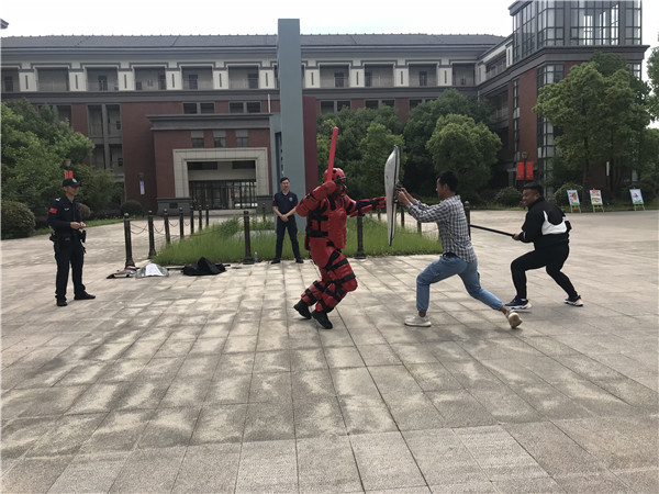 学校保安和教职工代表认真学习了防暴工具的使用方法,并进行了实战演练。警校教官随后演示了防暴工具组合的基本战术动作及技巧,有效提升了大家反暴恐的应急处置能力。