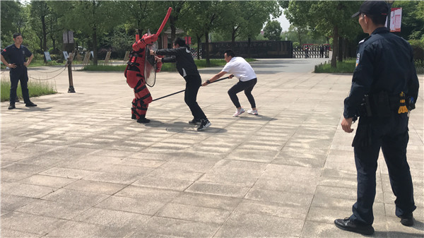 培训中,南通公安局警察学校齐超教官通过几起惨痛的案例向大家讲解了极端暴力事件的危害性,分析了当前校园防暴恐形势,并就学校保安装备、工作职责、如何发现和有效制止校园暴恐事件等方面对大家进行了培训。