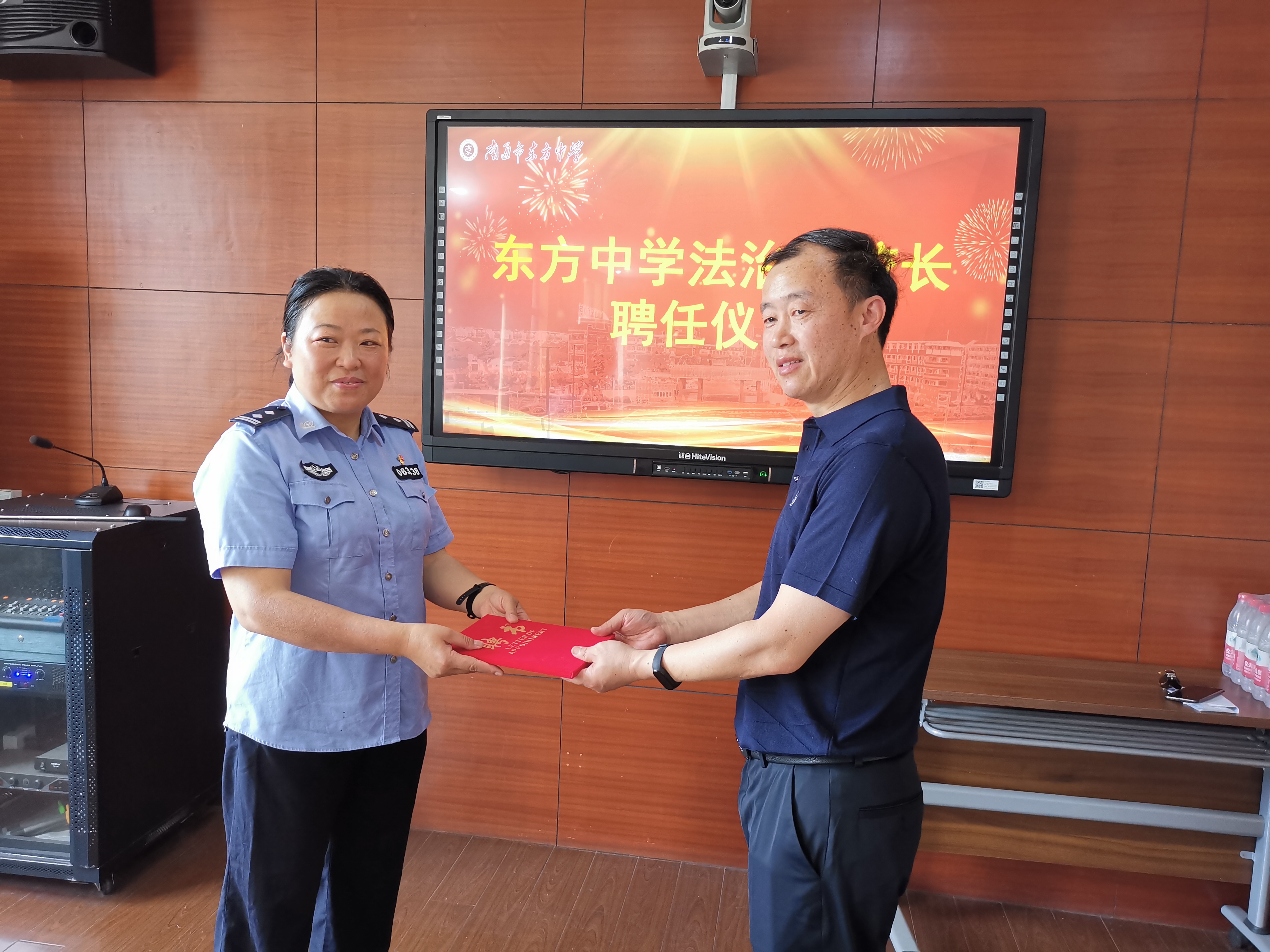 活动结束后,陈黎明副校长为汪美莲警官颁发了新一期聘书