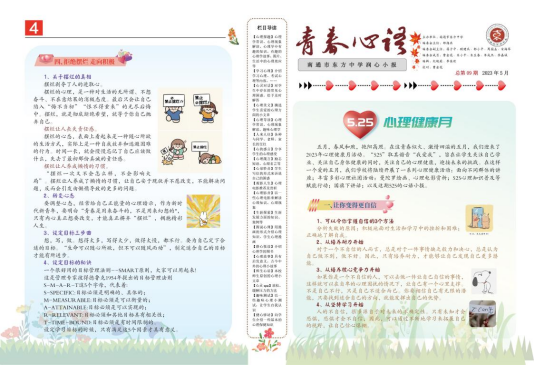 为积极宣传心理健康知识,提升学生心理健康素质,促进校园心理健康文化建设。我校积极开展“心理小报我阅读”、“健康心理月”黑板报评比、“宣传栏目我知晓”等多样形式的宣传活动,活动内容丰富多彩,弘扬正能量,彰显了多彩、健康、自信的青春底色。