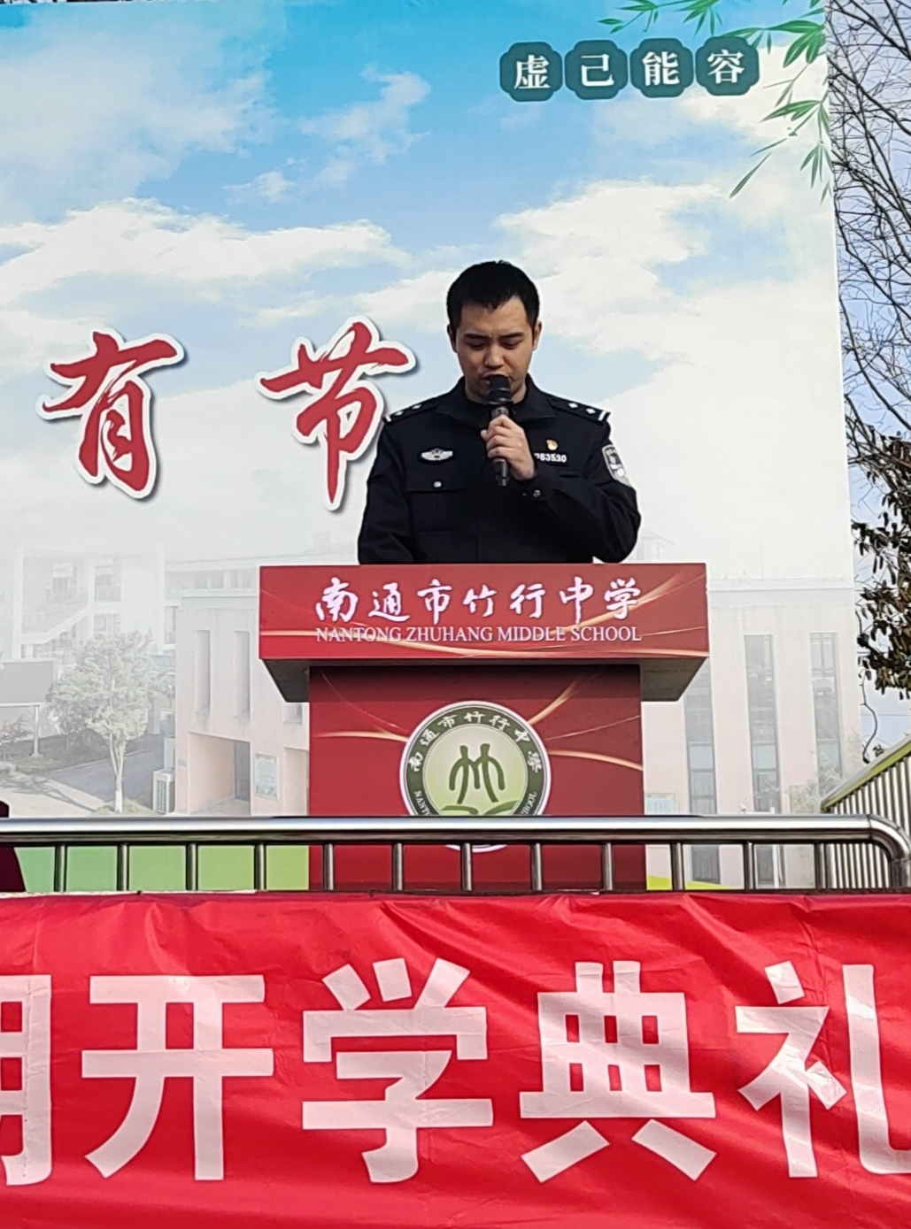 竹行派出所高警官送来了开学法治第一课,对全体师生员工进行了安全主题宣讲。高警官向全体学生提出了几点倡议:要时刻牢记交通安全;注意人身安全、网络安全;不要进入网吧、KTV、棋牌室等娱乐场所;无论在校内还是校外,都要遵守法律法规。
