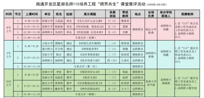 2025年4月8日至4月10日,南通开发区星湖名师115培养工程“跨界共生”班会、道法、数学三场课堂展评活动在南通高等师范学校附属小学成功举办。此次活动汇聚区域多所学校优秀教师,展开跨学科、跨校际的教育交流,为区域教育高质量发展注入新活力。