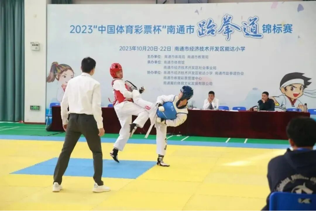 10月20日至22日,由南通市体育局、南通市教育局主办的2023年南通市青少年跆拳道锦标赛在南通开发区实验小学教育集团能达校区举行,共有来自南通市各县(市、区)的8支代表队、130余名运动员齐聚一堂,共享跆拳盛世。