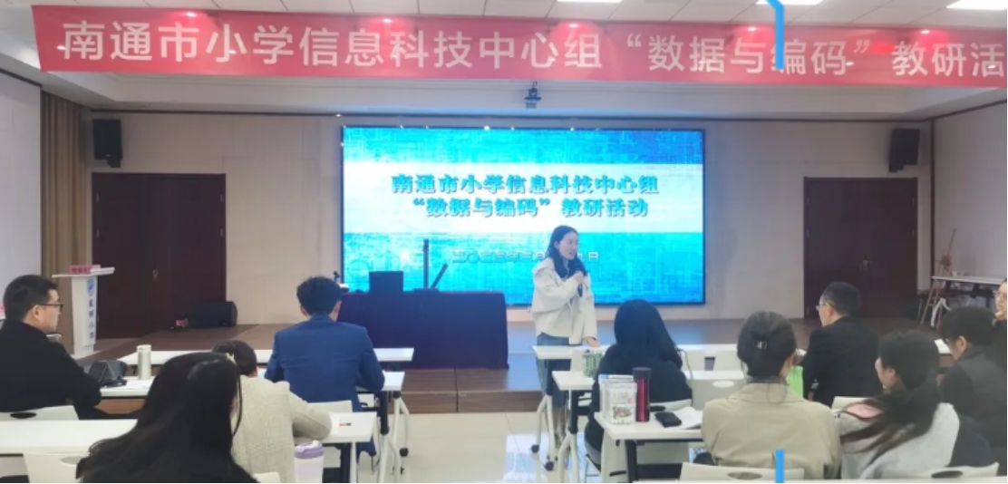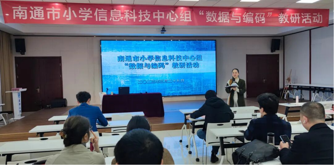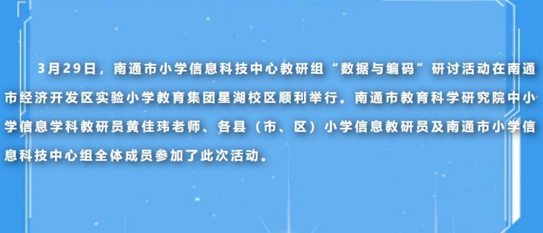 下午,南通开发区实小集团星湖校区徐达老师执教研讨课《我是智慧的通信员》,徐老师让学生模拟通信员间相互传递秘密信息来了解文字与数字间的转换过程。学生通过动手参与编码过程,提升了对编码的敏感性和对编码的主动分析能力,了解了编码在信息社会中的重要价值。
