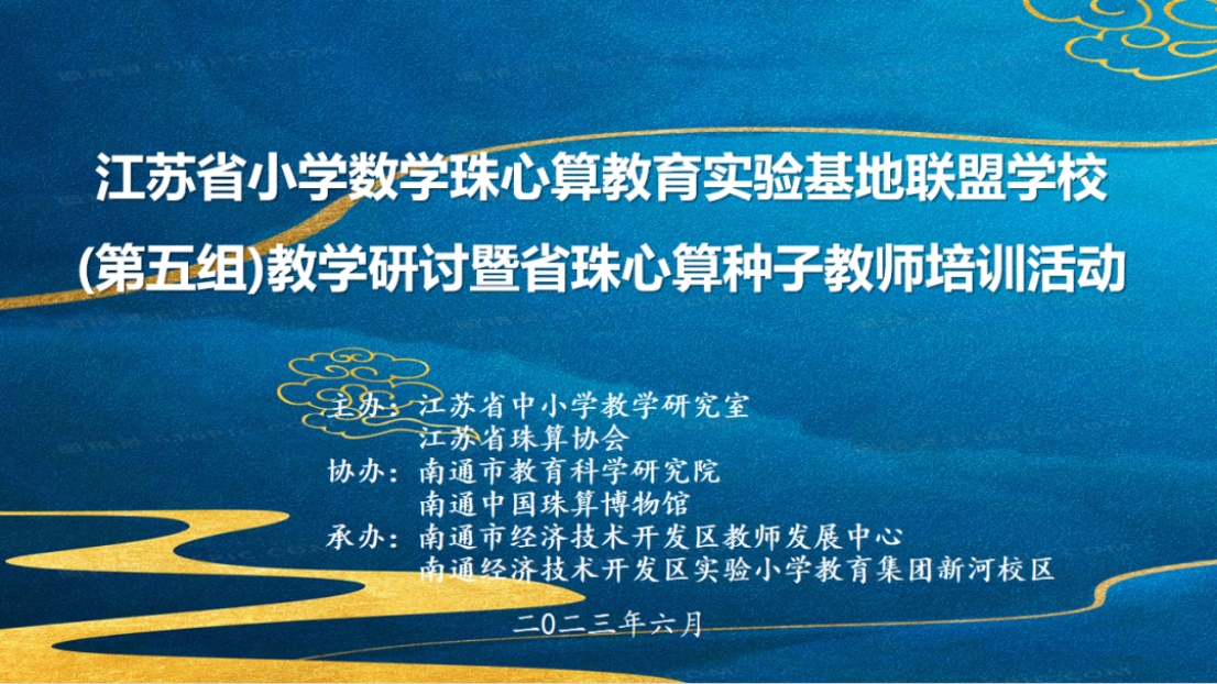 2023年6月13日-14日,江苏省小学数学珠心算教育实验基地联盟学校(第五组)教学研讨暨省珠心算种子教师培训活动在实小集团新河校区成功举行。江苏省珠算协会秘书长陈国忠,江苏省中小学教学研究室主任郭庆松,南通市教育科学研究院小数教研员顾娟,南通中国珠算博物馆科教部主任张建,南通开发区教育工委副书记、实验小学教育集团党委书记、总校长赵建华,开发区教师发展中心副主任杨万东以及省珠心算实验专家团队钱志平、顾培华,江苏省珠心算种子教师、骨干教师100余人参加了此次活动。
