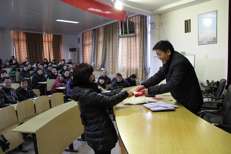 羌松延校长就2011-2012学生第一学期工作进行了简要小结。羌松延校长指出,过去的一个学期,在全校上下的共同努力下,学校取得了丰硕的成果,亮点颇多:教学科研成果累累;广大师生员工积极参加各类大赛,成绩突出;学生工作丰富多彩,学生管理工作日趋规范化;后勤保障、安全稳定等工作取得了优良成绩;各项事业发展受到广泛好评。随后,羌校长还对寒假有关工作及下学期开学工作进行了总体部署,并就2011年度绩效工资发放情况做了简要说明。随后,羌校长宣读了有关中层干部任命决定。最后,羌校颁发了2011年度教科研成果奖。