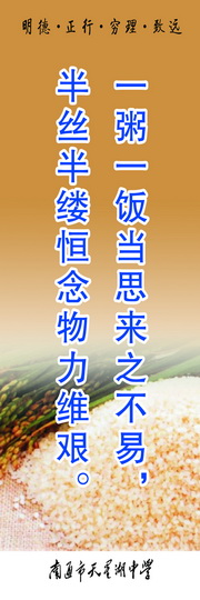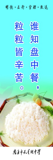 我校师生食堂先后被南通市教育局、南通市卫生局评为南通市“文明示范食堂”、“A级食堂”。 为了让这些荣誉名副其实,一以贯之,我们除了抓紧食堂从业人员素质建设和食堂规章制度建设外,还努力营造优美的就餐环境,通过标牌的设计、制作,墙面的布置、张挂,创设令人耳目一新和富有教育意义的就餐环境,力求使我们的食堂安全卫生、文明有序、厉行节约,使我们的师生开心享受每一餐,快乐生活每一天。
