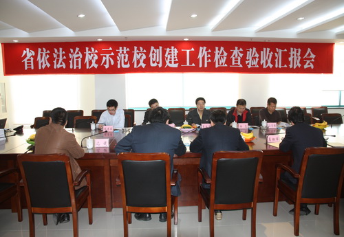 省依法治校示范校创建工作检查验收组莅临我校 省检查组到校后,在天星湖中学徐新民校长的陪同下先参观了校园,然后步入会议室听取了南通市教育局局长助理袁兴石同志所作的南通市依法治校示范校创建工作汇报,接着听取了天星湖中学校长助理葛红军同志所作的天星湖中学创建江苏省依法治校示范校的情况汇报。之后,检查验收组的专家对天星湖中学的依法治校创建材料进行了阅看,对学生代表进行了问卷调查。 本次检查验收,将进一步推进我校依法治校工作的开展,使我校的各项建设在法治的轨道上稳步前行。