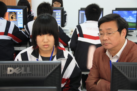 25日下午,评估组专家又投入了紧张的连听两节随堂课的评估工作。听课过程中,专家们边仔细听课,边认真记录,有时还悄悄地走近学生,听他们的即席讨论,看他们的当堂作业和电脑构图。 今天被听课的老师有张小丽(地理)、刘宏兵(政治)、秦秋梅(化学)、严月萍(英语)、张丽华(信息技术)、施惠丽(数学)、李红英(通用技术)等七位。 明天上午,还将有8位老师被随机抽听随堂课。